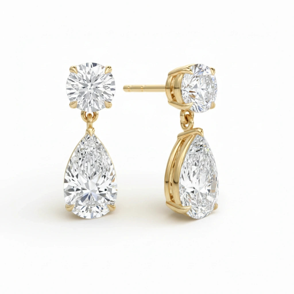 Round & Pear Duo Drop Earrings