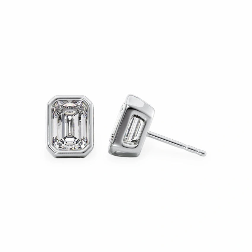 Emerald Moissanite Bezel Stud Earrings