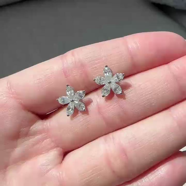 Pear Shape Moissanite Flower Stud Earrings in 10K White Gold